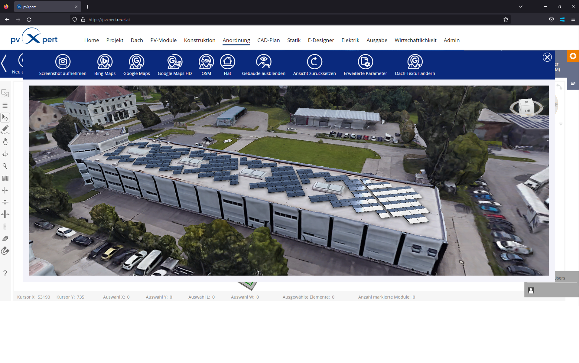 pvXpert ist ein webbasiertes Photovoltaik Planungstool, mit dem Sie mithilfe von Satelliten-Bildmaterial sowie CAD-Plänen ganze Photovoltaik Projekte inklusive Statikbericht, Wechselrichter-Auslegung, Stücklisten und Montageplänen erstellen, visualisieren und simulieren können.