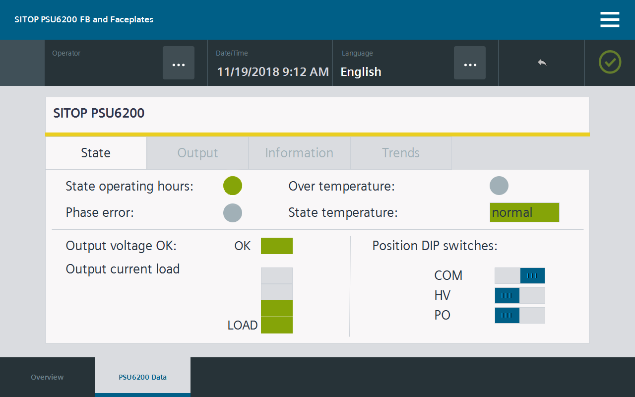 Schon ein Blick in den Schaltschrank genügt, um das Wesentliche zu erfassen: Ob DC o.k., Auslastung oder Restlebensdauer des Netzgerätes – SITOP PSU6200 zeigt über den LED-Diagnosemonitor auf der Frontseite des Gehäuses an, was Sache ist.